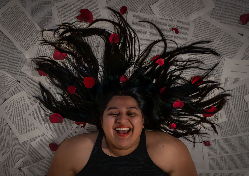 This editorial draws inspiration from the theme of opposites, particularly as depicted in romance novels. It explores how two contrasting elements can appear different yet share striking similarities. The models are posed similarly and set against comparable backdrops to emphasize these connections, while contrasting elements like dark and light edits, varied rose petals, and opposing wardrobe choices highlight the differences.